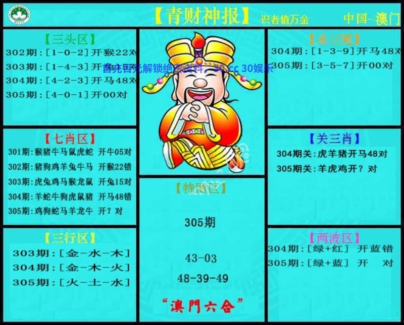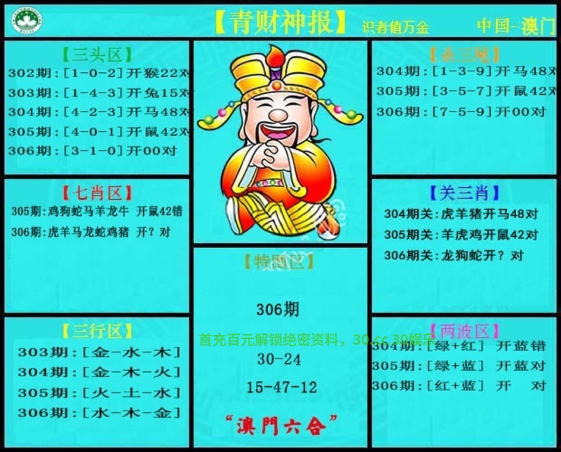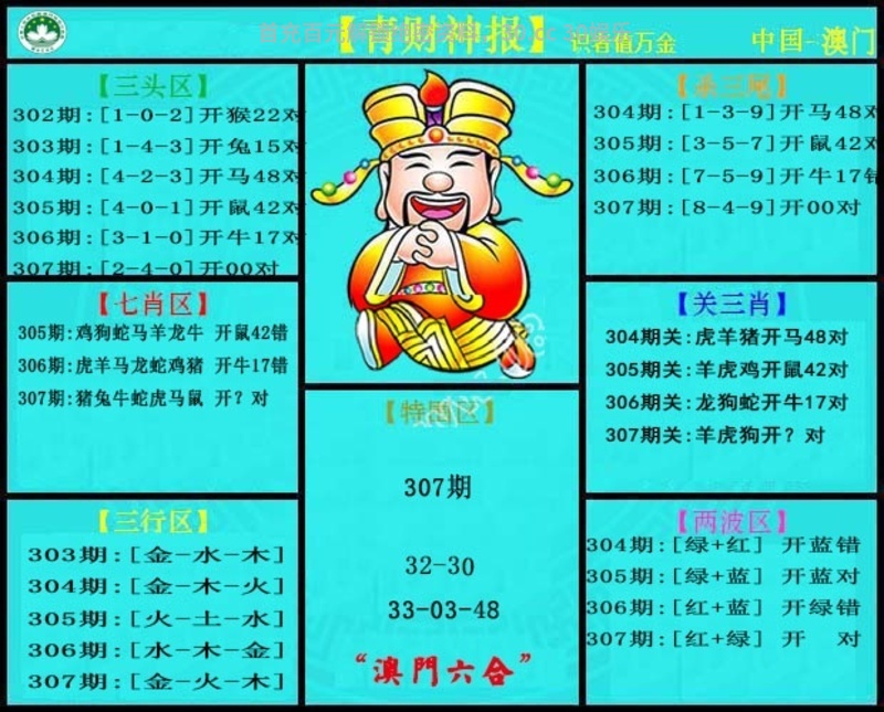 | 306期 | 0尾-3尾-7尾 | 1尾-4尾-5尾 | 0尾-1尾-4尾 |